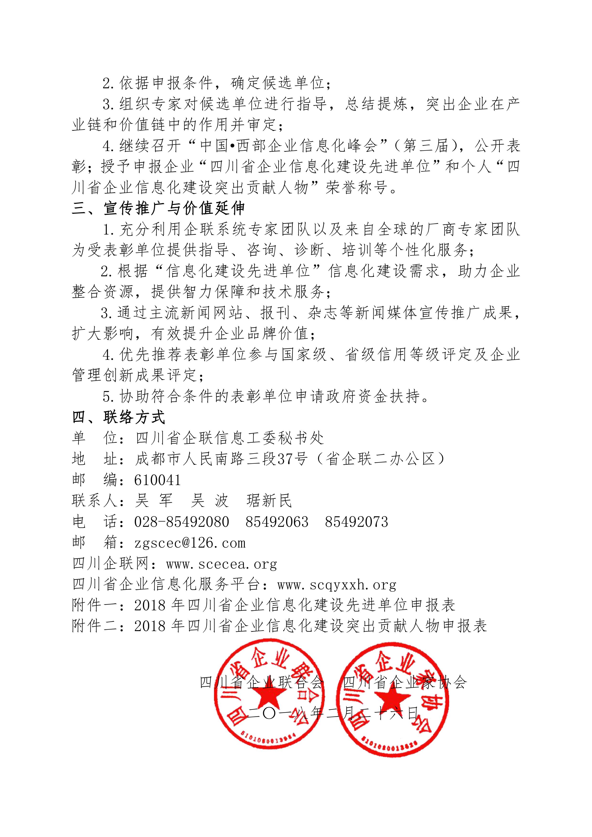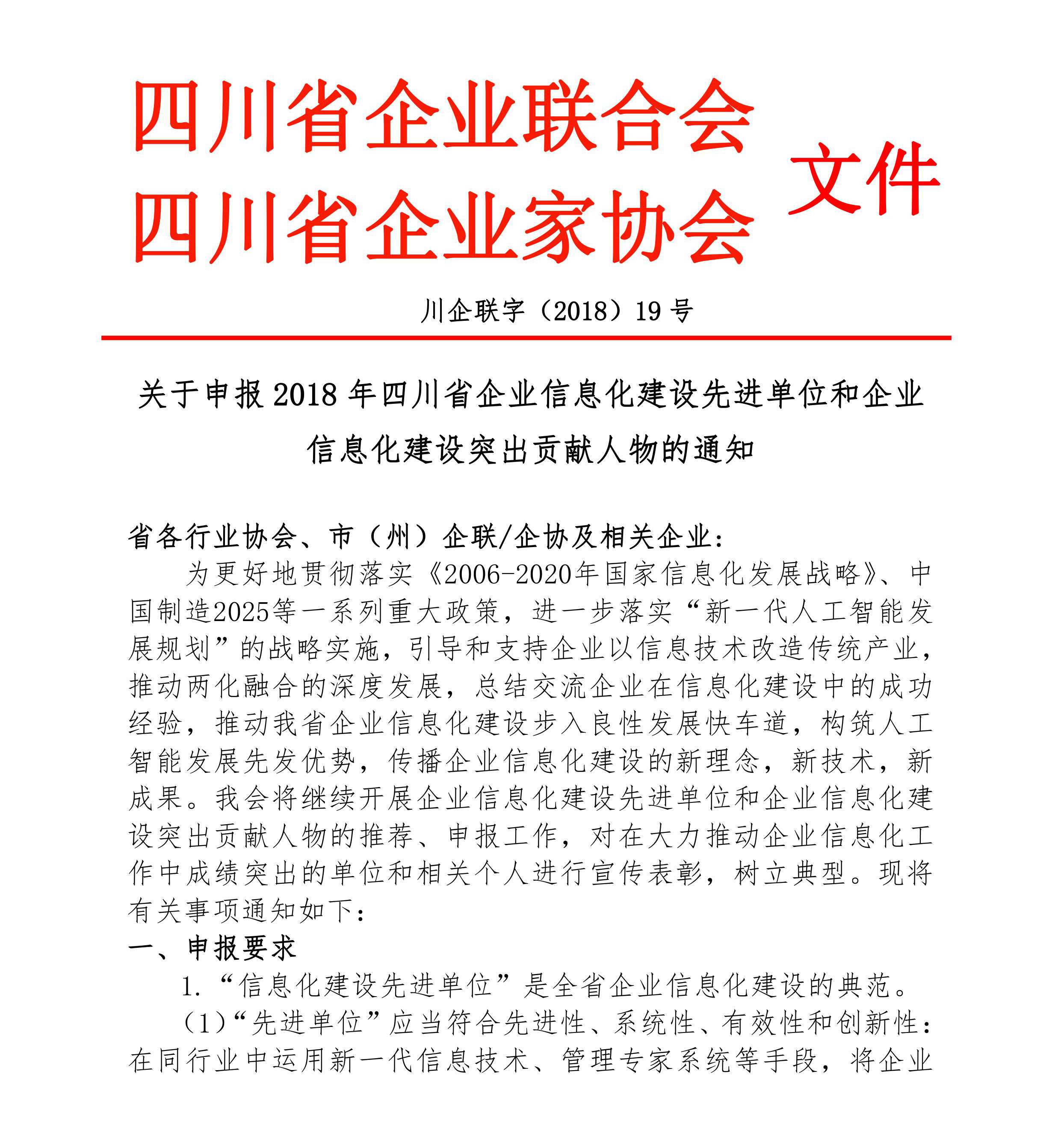 关于申报2018年四川省企业信息化建设先进单位和企业信息化建设突出贡献人物的通知