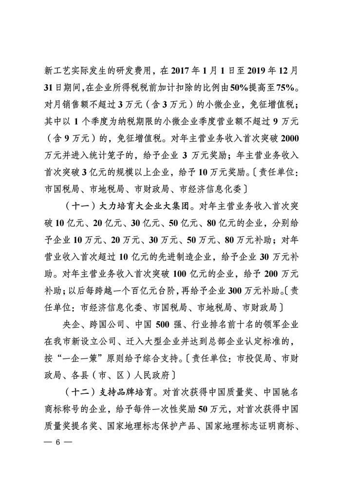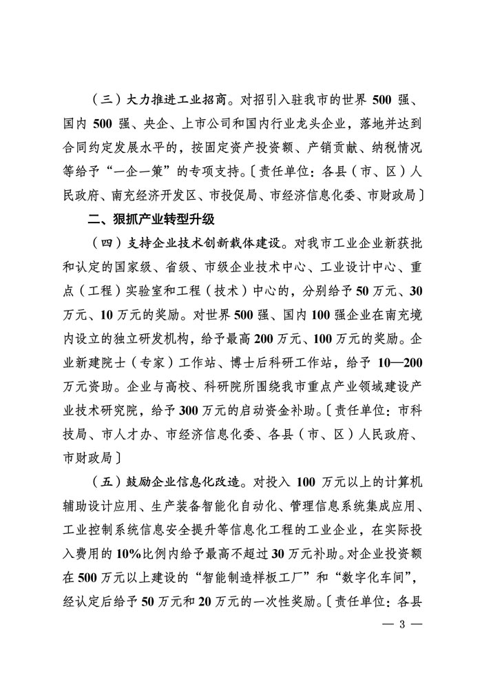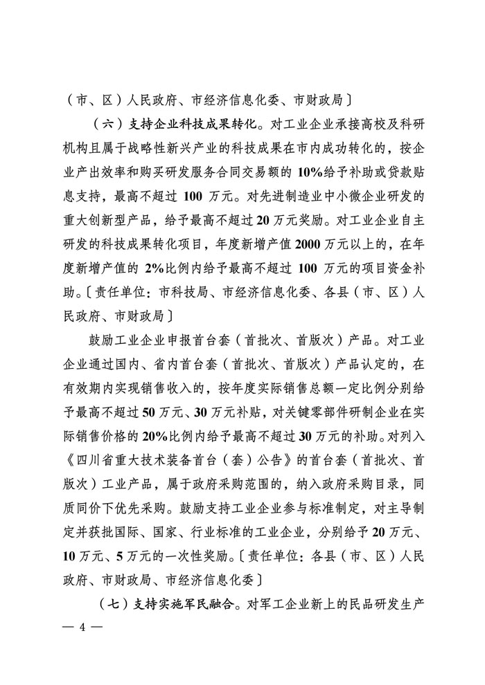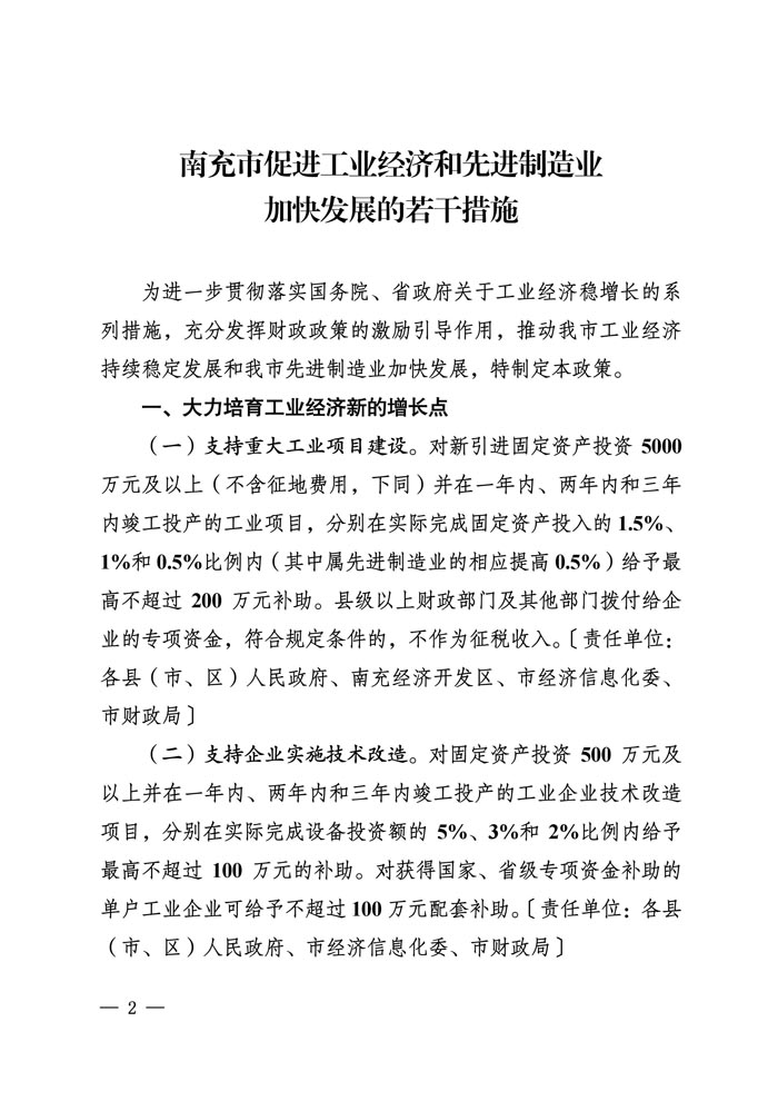 促进工业经济和先进制造业发展若干措施正式文件