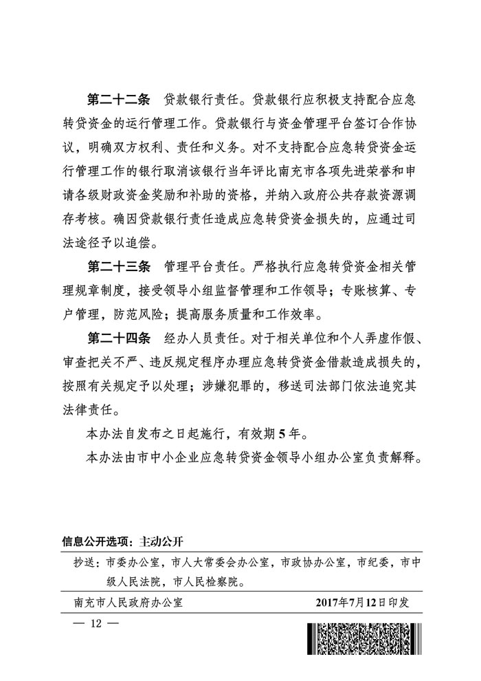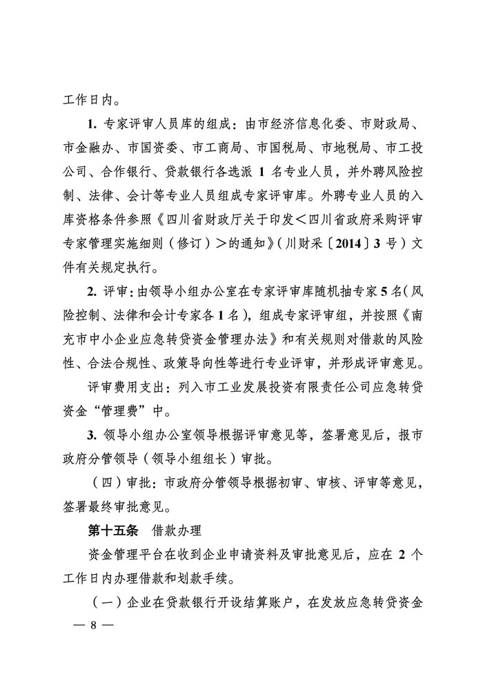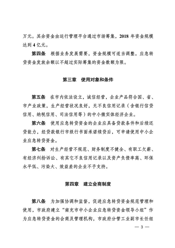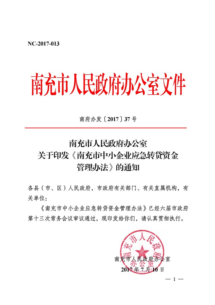 关于印发《南充市中小企业应急转贷资金管理办法》的通知